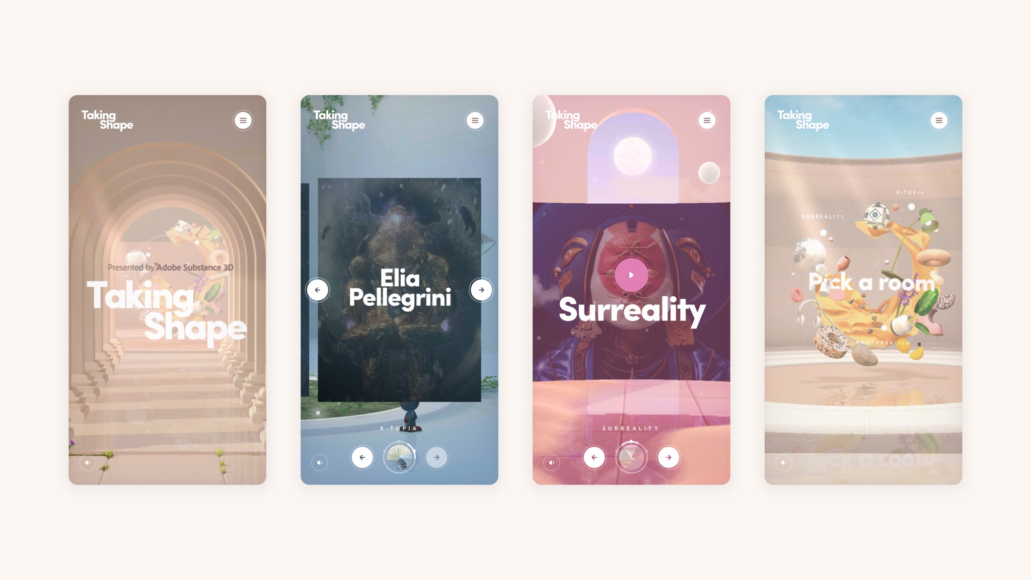 After observing the continuous influence of 3D on digital transformation (and the acquisition of Substance Premier), Adobe launched a campaign around the future of 3D. This was communicated through Taking Shape, an immersive journey through the world of 3D art and design, which celebrates artists and encourages creators to discover Substance’s 3D tools. Adobe partnered with DOGSTUDIO/DEPT® to develop an immersive experience featuring Substance 3D’s software.