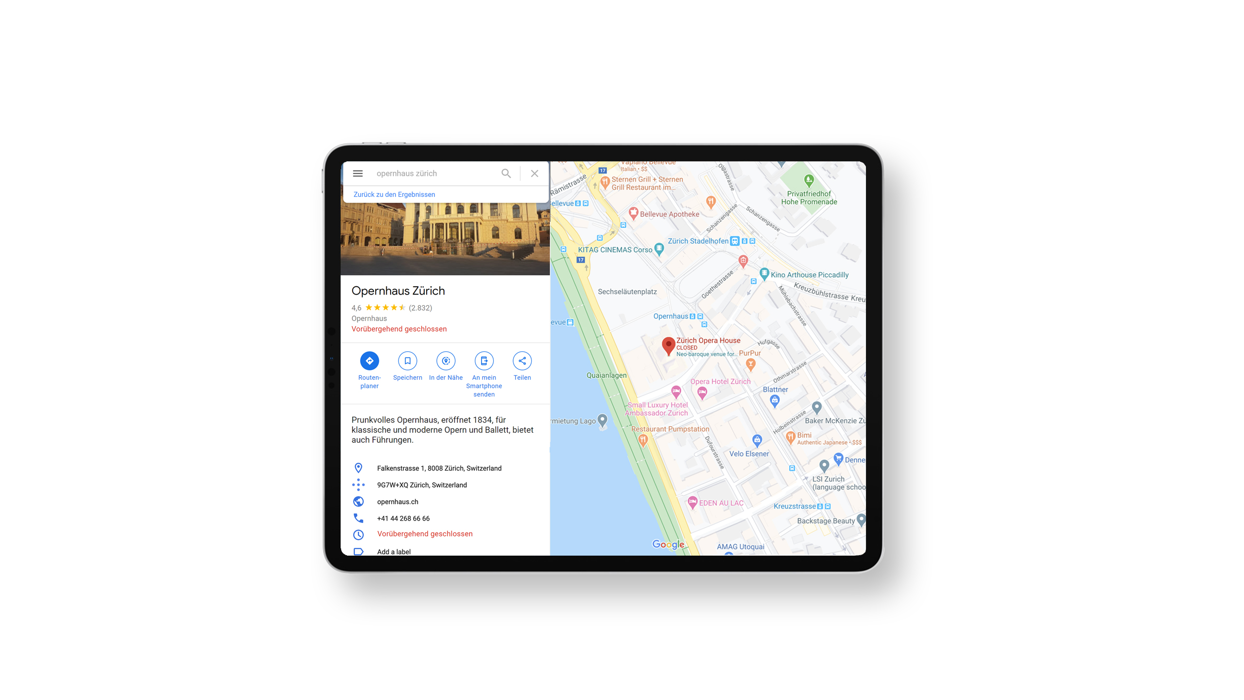 So sieht z.B. der Google Maps Eintrag des vorübergehend geschlossenen Opernhauses Zürich aus: