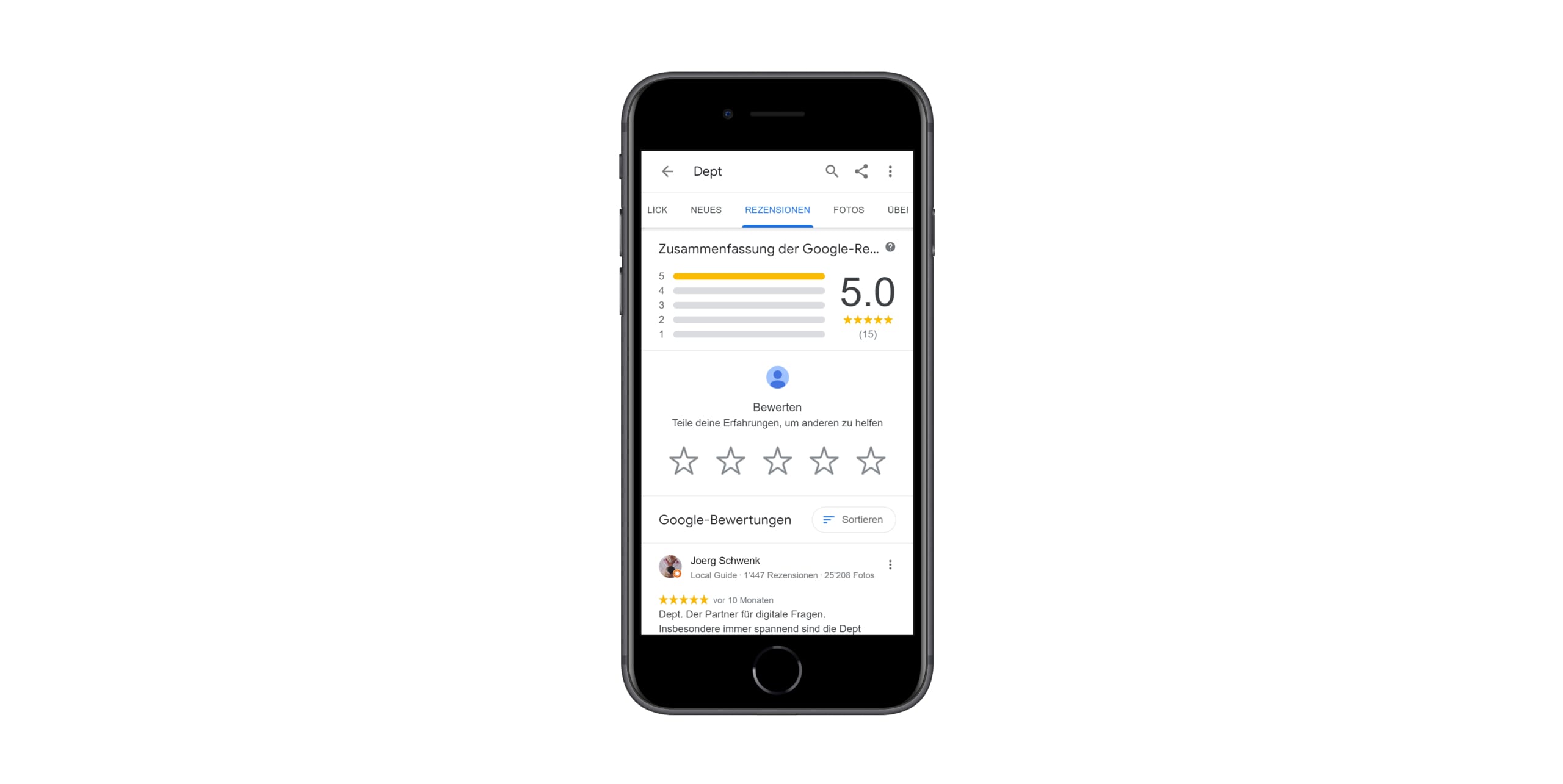- Reviews erhöhen die Sichtbarkeit in Kartendiensten; Beliebte Standorte werden eher oder besser sichtbar angezeigt