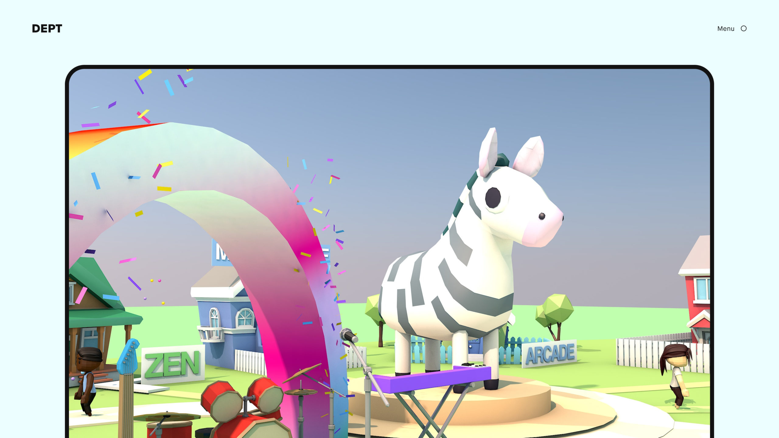 In vijf jaar groeide het DEPT® Festival uit van een kleine bijeenkomst tot hét industriefestival van het jaar, waar duizenden bezoekers van over de hele wereld drie dagen lang inspiratie konden opdoen over de toekomst van creativiteit, data en technologie. Door de komst van COVID-19 moesten we ons evenement opnieuw vormgeven, maar dan geheel digitaal. Het doel: drie dagen aan activiteiten en inspiratie in een drie uur durend evenement onderbrengen op zo’n betoverende manier dat het slechts aanvoelt als drie minuten. Daarom besloten we een virtuele ervaring van een hoger niveau te creëren: vol energie, een beetje gek en vooral persoonlijk. We transformeerden de fysieke belevenis naar een virtuele ervaring door een interactieve 3D-kaart te bouwen met vijftien stages, waar in totaal meer dan 35 presentaties plaatsvonden.