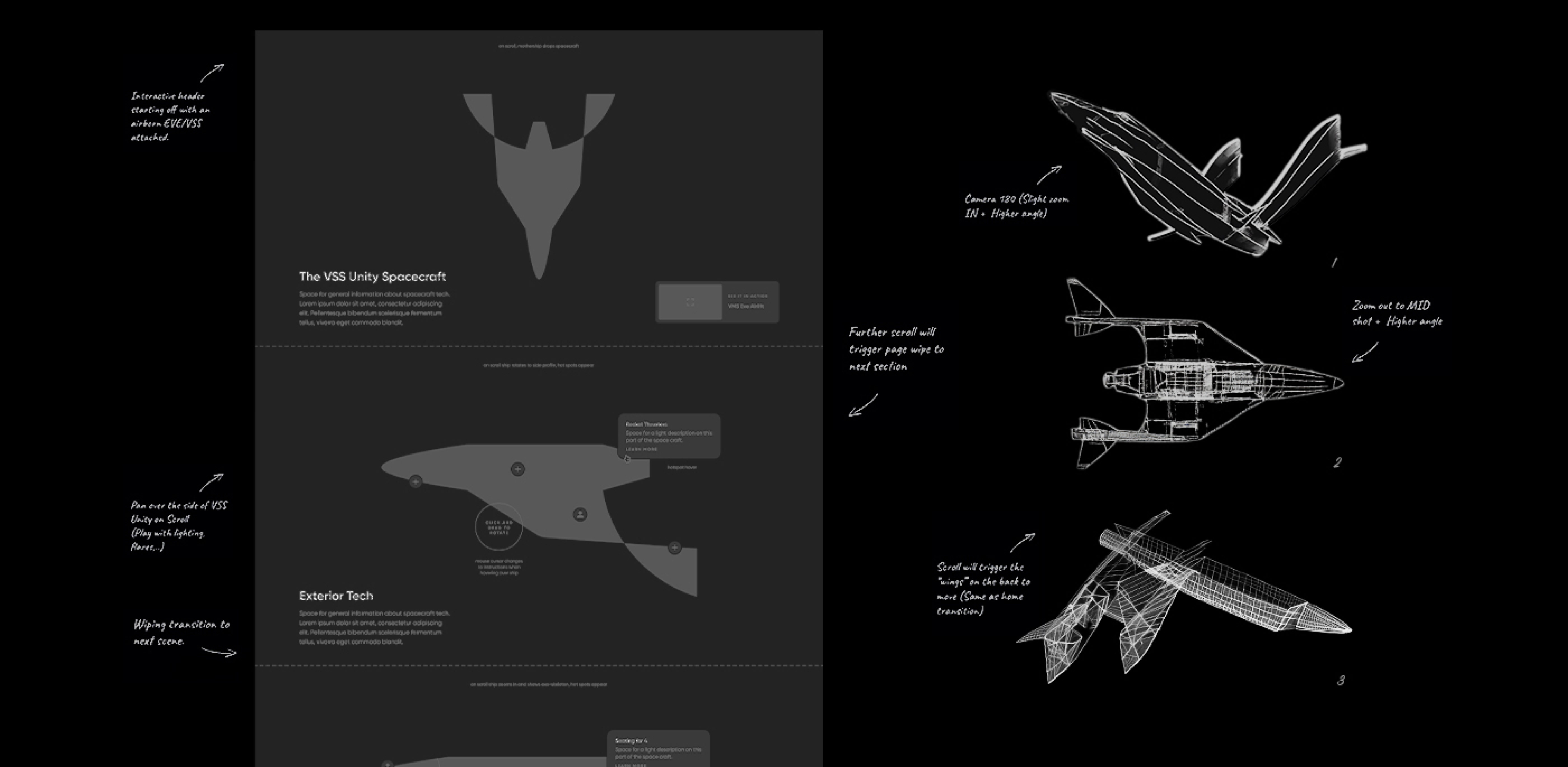Now, let’s talk about the grandeur of Virgin Galactic’s work. We couldn’t just hide it away in some tiny corner of the website. Oh no! We wanted to show off their amazing processes and technology in full 3D glory. Imagine scrolling through an awe-inspiring journey of a spaceship’s return to Earth or getting a front-row view of their legendary spaceport.