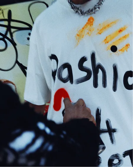 In the heart of London’s creative scene in Soho, Aly casually wipes Cheetle dust on his t-shirt; a relatable, messy moment we’ve all experienced. Navinder spots it and has a spark of artistic inspiration. In a “caught on camera” style video, the street artist creates a bespoke piece of wearable art directly onto Aly’s shirt, transforming the accidental Cheetle stain into intentional fashion.
