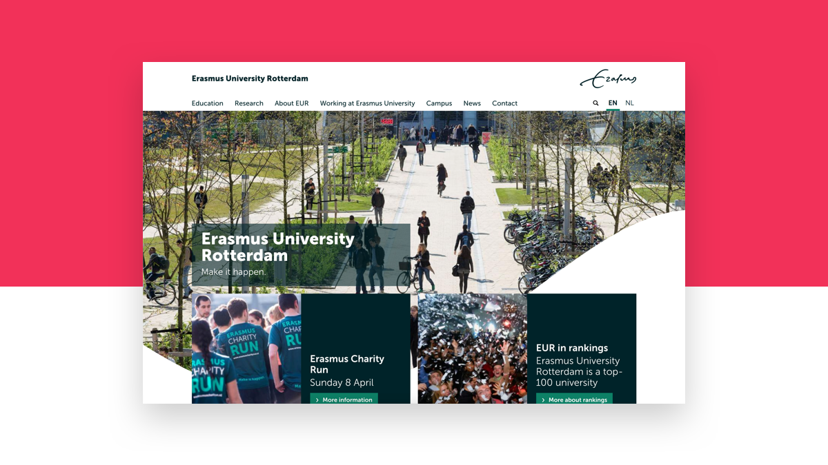 Die Erasmus Universität hat eine Vielzahl von Fakultäten und Gesellschaften, die jeweils eigene Herausforderungen und Anforderungen haben. Unsere Aufgabe ist es, die Bedürfnisse der einzelnen Fakultäten zu erfüllen und neben der Marketing-Kommunikation der kleinen Einheiten auch den Gesamtüberblick zu bewahren. Wir versuchen nicht nur, durch die vielen Einzelprojekte eine Linie zu halten, sondern legen auch viel Wert auf die Anwendung der Learnings, die wir aus den verschiedenen Kampagnen ziehen. Eine grosse Herausforderung in diesem Zusammenhang ist es, die junge Zielgruppe zu erreichen und zu halten.