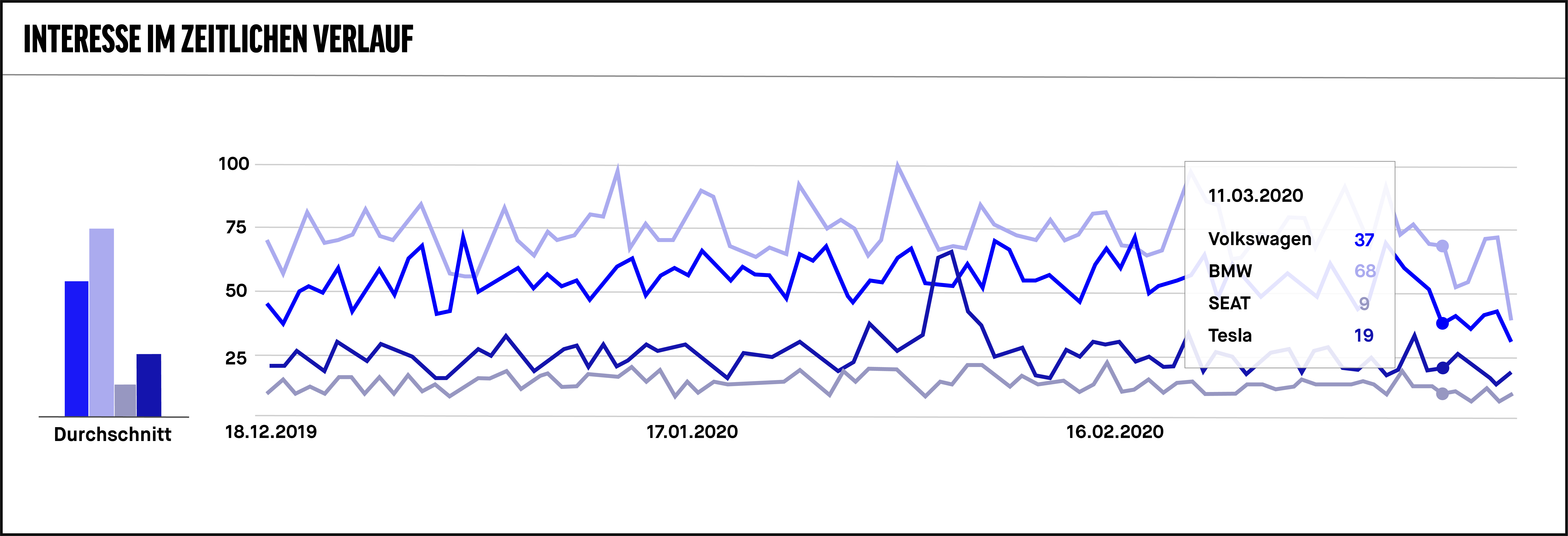 Upper Funnel: Das Interesse an Automotive Brands geht in manchen Fällen zurück, ist aber existent.