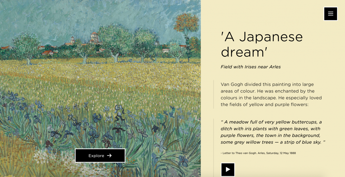 The museum, however, did not only want to modernise its application, they also wanted to attract and reach a younger target audience by updating their app. So we illustrated the story of Vincent van Gogh and used innovative UX techniques and made the format available for all devices. We also wanted the app to be available and easy to use for everyone so we followed and implemented the highest accessibility standards. This ensured that all of the visitor’s attention went towards the protagonist of this interactive experience: Vincent van Gogh and his masterpieces.