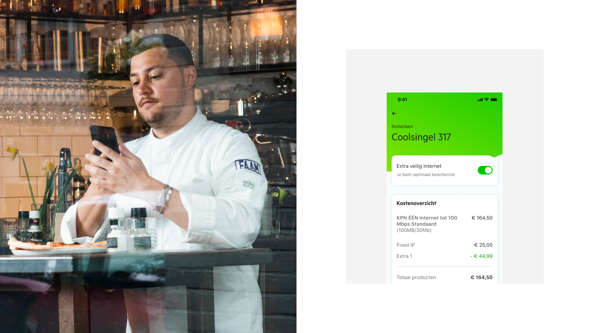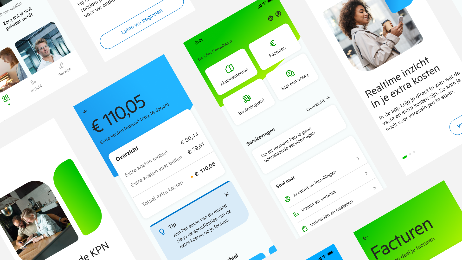 Zichtbaarheid op de zakelijke markt is het belangrijke uitgangspunt geweest voor het design van de MijnKPN Zakelijk app. Het eindresultaat spreekt voor zich: zakelijke klanten krijgen met de MijnKPN app real time inzicht in hun financiën, extra inzicht voor efficiëntie en veiligheid en kunnen ervaringen van andere ondernemers bekijken. Zo staan alle belangrijke zakelijke diensten van KPN in één gebruiksvriendelijke app bij elkaar.