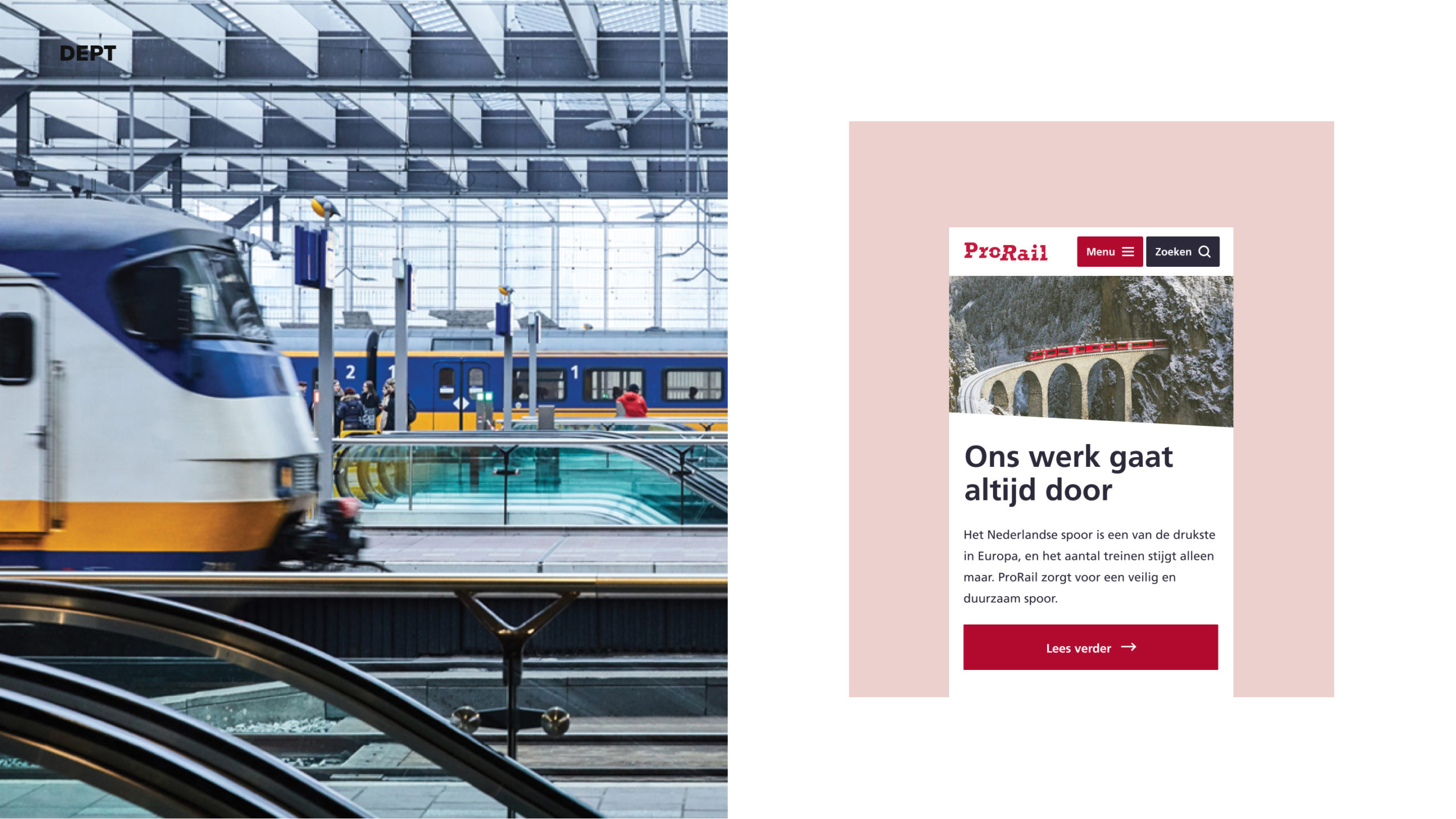 Om vraag en aanbod naadloos op elkaar te laten aansluiten, werkt ProRail continu aan de verbetering van sporen en stations. ‘Show don’t tell’ geldt in dit geval niet, want zowel reizigers als medewerkers moeten goed op de hoogte zijn en blijven van alle veranderingen in en rondom ProRail. Sinds 2020 heeft DEPT® een mooie samenwerking met de spoorwegbeheerder, waarin digitale versnelling en toegankelijkheid centraal staan.