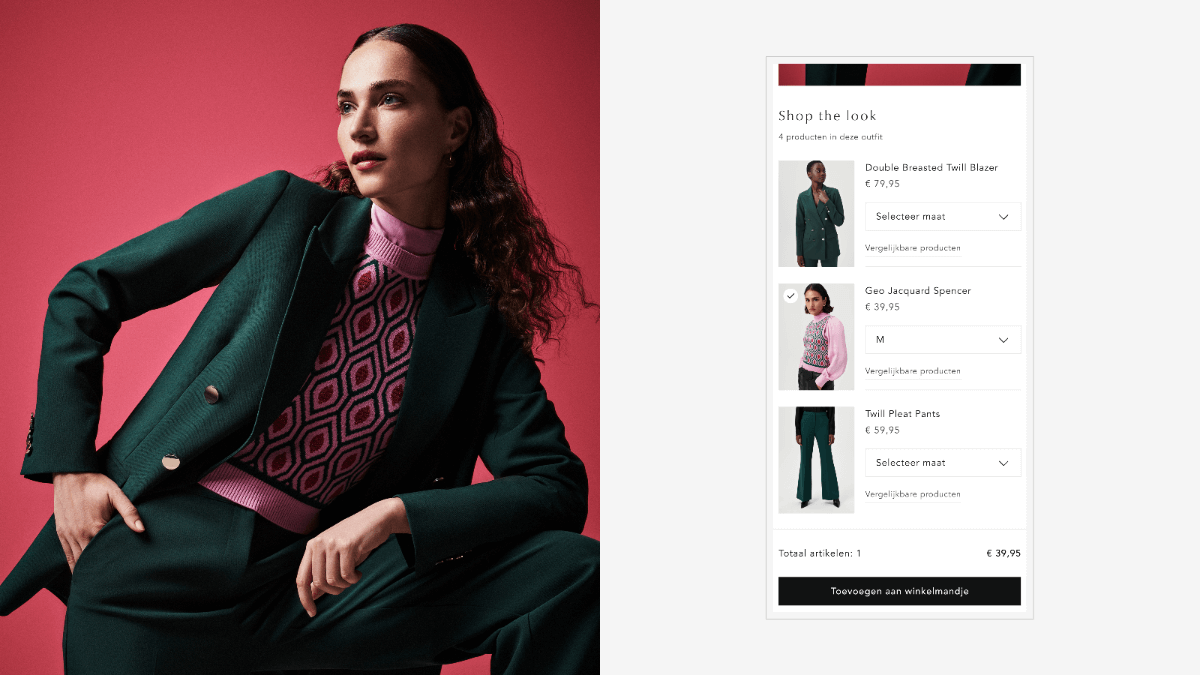 Het meest in het oog springende element van dit project is de “Shop the Look”-propositie, waarmee klanten in één klik complete outfits kunnen aanschaffen, gemakkelijk gemaakt door dynamische content en klikbare producten. Hierdoor komen de producten meer tot leven en kunnen ze makkelijk aan het winkelmandje worden toegevoegd. Maar ook e-commerce-integraties met moderne betaalmogelijkheden zoals Apple Pay, omnichannel giftcards, adresvalidatie, afhaalpunten en levertijden, synchronisatie van de productcatalogus en bestellingen, voorraad en prijzen zorgen dat de webshops draaien als een geoliede machine.