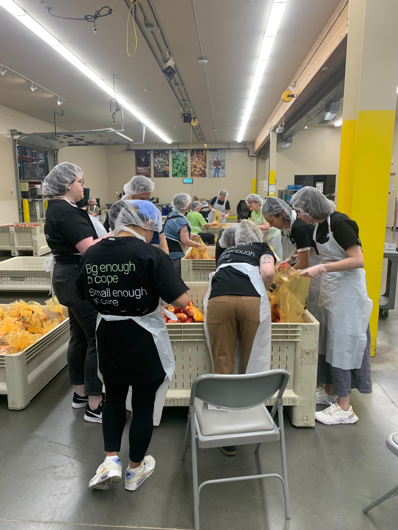 You’ll repack, sort, inspect, and box shipments of produce, bread, or dry goods into smaller quantities. The food we receive at our warehouse comes in bulk quantities, and volunteers break it down into manageable sizes.