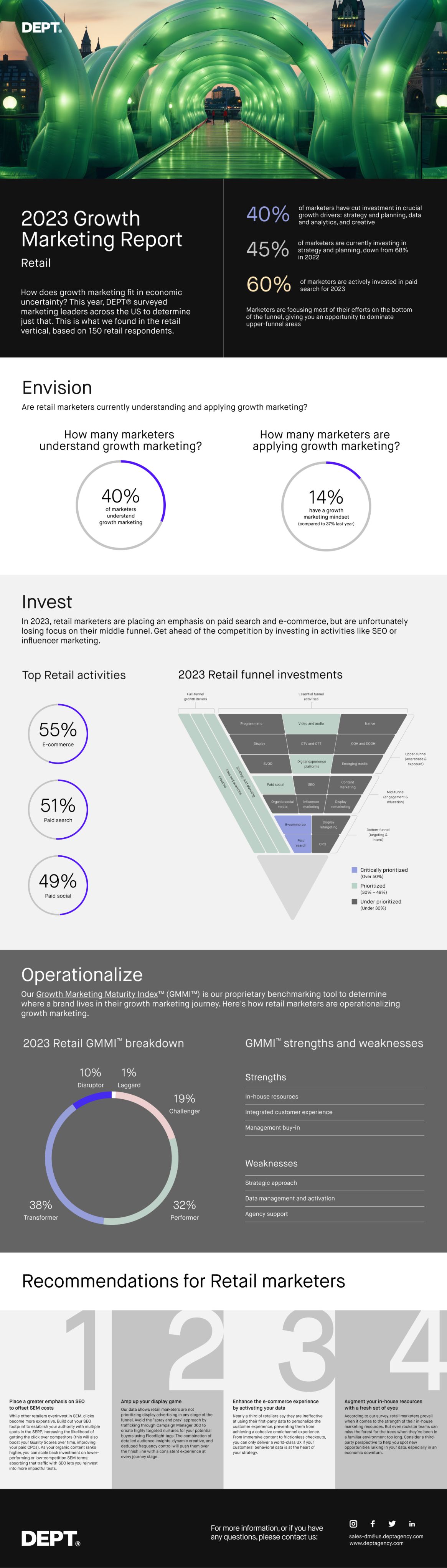 This year, DEPT® surveyed 150 retail and e-commerce marketing leaders from companies ranging from $100 million in revenue to over $1 billion for the Growth Marketing Report.