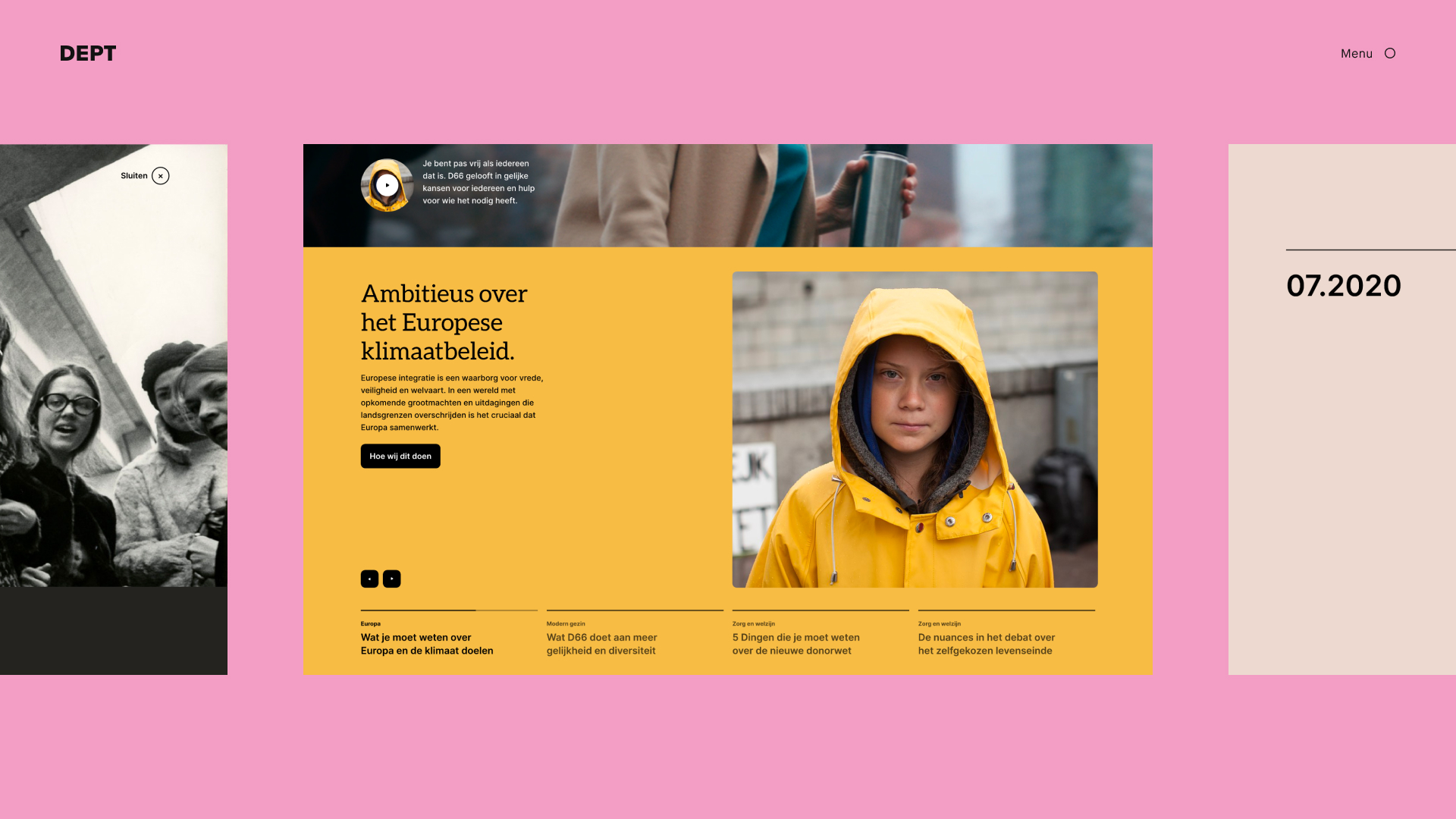“Laat iedereen vrij, maar niemand vallen.” Met deze kernboodschap van politieke partij D66 en alle verhalen die ze daarbij willen vertellen zijn een goede website, een pakkende reclamecampagne en een sterke digitale marketingstrategie een must. De partij koos DEPT® om met deze professionaliseringsslag de Tweede Kamerverkiezingen in te gaan.