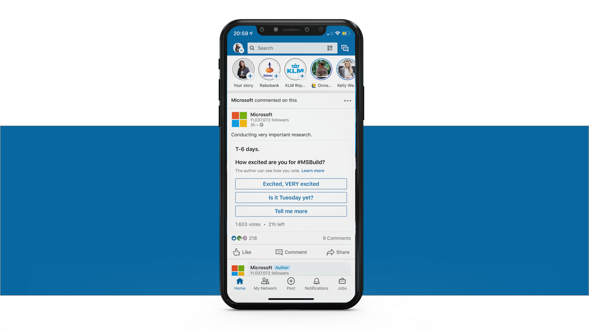 The stories are available within The Netherlands since May 13th. This means that The Netherlands is the second country in the world (subsequent to Brazil), in which stories are being tested. LinkedIn launched a stories feature because they are convinced that right now it’s more important than ever to actively interact with each other. However, these stories are not yet available for company pages. There are only a few companies who currently have access to this new feature. KLM published the first LinkedIn story. During the day it was published, a huge increase in reach was visible and the stories seem to have raised positive reactions amongst the Dutch LinkedIn members.